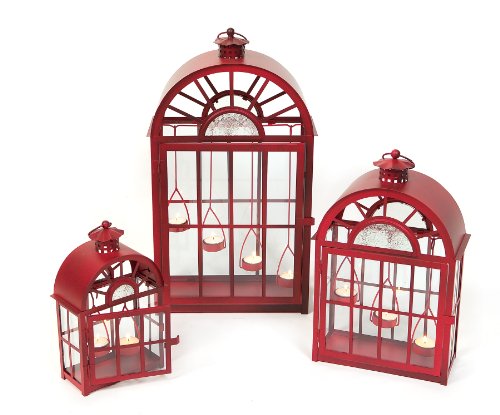 BEST BUY.. Melrose International Iron and Glass Dome Lantern, Red, Set of 3